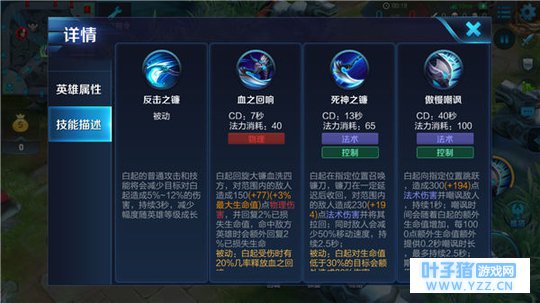 白起是一个可以先手开团的群控英雄,大招嘲讽的时间很长范围也大可以先手大招控制,然后一技能消耗敌人血量。配合队友击杀敌人的同时,利用二技能的钩子留人控制和封敌人走位,让所有敌人都绝望的无处可躲。