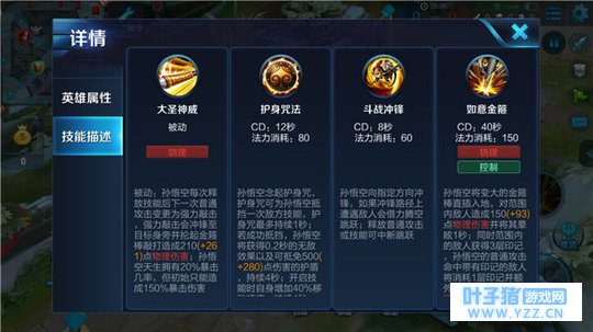 2、孙悟空只有二技能一个位移技能,因此机动性也不是很强,所以在选择攻击目标的时候尽量不要选择高机动性的英雄,否则很容易被对方逃掉,这样会使自己在战场上的作用大大削弱。