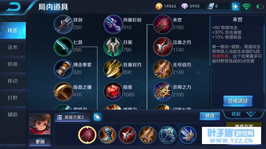 六神装:末世、急速战靴、泣血之刃、无尽战刃、破甲弓、破军