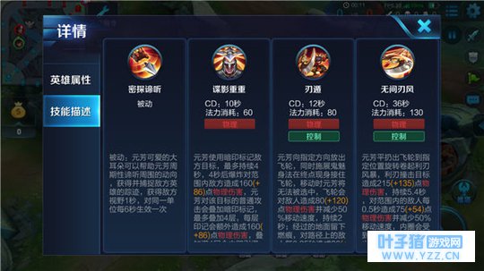 李元芳技能介绍: