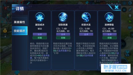 甄姬在指定位置召唤出水柱,对范围敌人造成伤害并击飞。一技能的命中率在熟练之后还是非常高的,团战中的效果很明显,配合上被动的冰冻,甄姬能把敌人控制到死。
