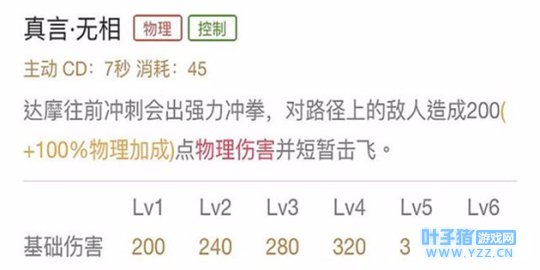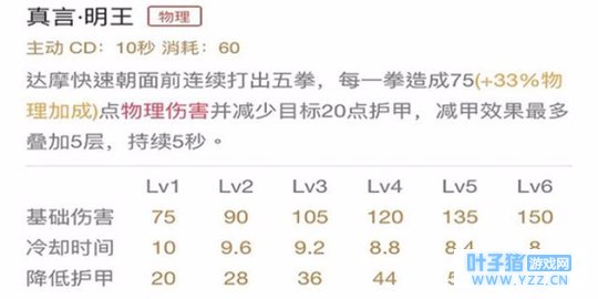 数据解析:达摩的核心输出技能,成长值高,主加点利于达摩打出输出,建议主加点。