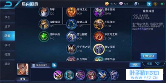 抵抗之靴,鞋子对经济的需求低,应该尽快做出有利于达摩的游走和支援,抵抗之靴可以对控制技能的效果抗性更强,不容易被长时间的控制效果留住,可以有更多的操作空间,另外还加强了法术抗性。