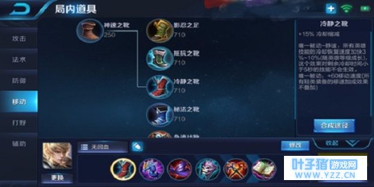 第一件出冷静之靴,冷静之靴增加了60的移动速度方便前期嬴政的跟团和保命,其提供的15%的冷却缩减和唯一被动静谧让嬴政的技能衔接更加流畅,在中后期一次团战中嬴政可以打出两次大招。