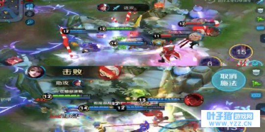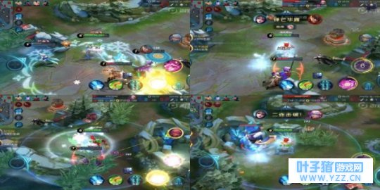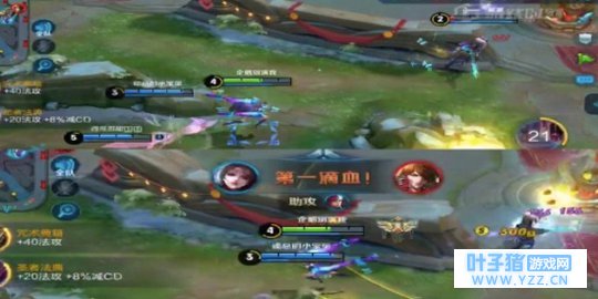 前期貂蝉先点出一技能清线。作为一个靠团战发育的法师,我们必须时刻关注己方打野和辅助的位置,与队友保持良好沟通。进入四级后,我们就可以配合己方打野去反野。如图,我们在前期取得了巨大的优势,在我方韩信入侵野区时,我们与辅助东皇太一配合,二技能与敌方李白拉近距离,命中后二技能冷却时间迅速减少,再一次利用二技能拉近距离,击杀敌方李白,拿下一血。
