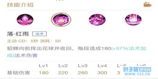 整体分析:一技能是貂蝉在团战中主要的输出技能。我们主要依靠一技能来打出被动。前期我们也需要依靠一技能来清理兵线。