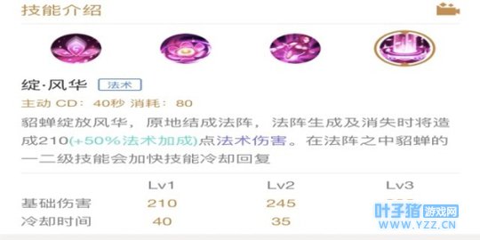 整体分析:貂蝉的大招并不是一个输出技能,它是一个更偏向于辅助功能的技能。大招的法阵中,1、2技能可以迅速冷却,所以三技能的位置一旦开启得当,那么团战中貂蝉将成为一个持续输出的机器。