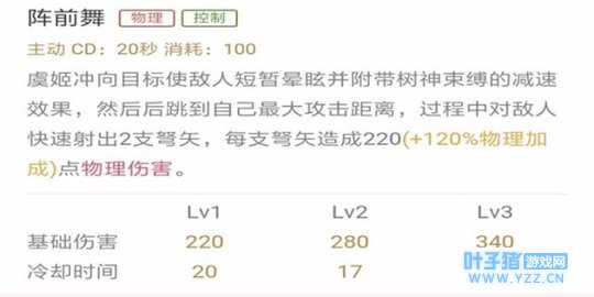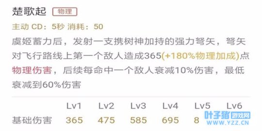 数值分析:虞姬一技能的物理加成和基础伤害都非常高,而且在前期冷却缩减就极短,所以在技能加点上推荐主加一技能。