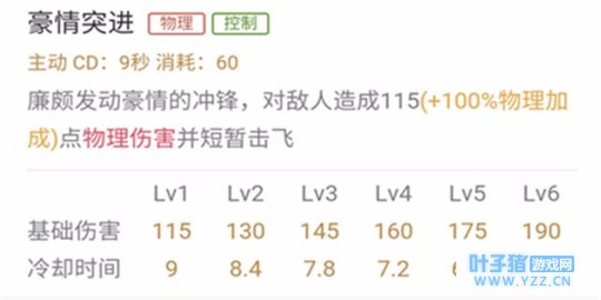 解析:该技能的冷却时间很短,到了后期的技能释放更是频繁。击飞效果提升了廉颇的控制能力,配合带有红buff的射手或刺客,可以很有效的风筝对手。