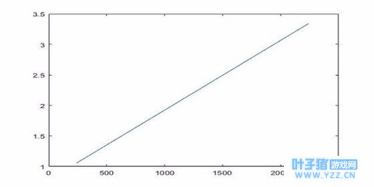 而博学者之怒的性价比函数图像如下(用同样方法计算),x轴为法术强度,y轴为性价比,可见需要1426点法术强度才能支撑2.41的性价比。