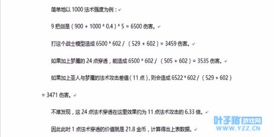 而且我们知道,对于法术防御减伤这样一个反比例函数,在对手魔抗较低时同等穿透价值会更大。所以每一个干将莫邪势必都是冲着穿完所有魔抗去的。