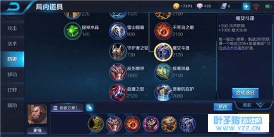 魔女斗篷,+360法术防御,+1000最大生命,被动可以为程咬金套上一个法术护盾,后期做出魔女斗篷补足程咬金的法术抗性,削弱敌方法师的输出威胁。