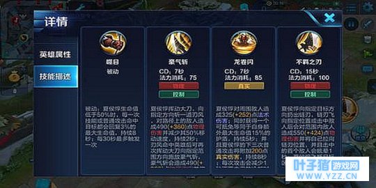 解析:夏侯惇向指定方向释放刃风,对目标造成伤害的同时,还会有持续2秒的50%减速。如果命中敌方英雄,可以再次释放该技能,将一定区域内的敌人击飞并造成伤害。