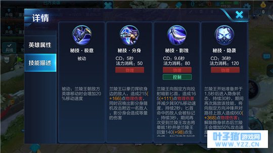 兰陵王是一个隐身杀手,施放大招后进入隐身状态,可以悄无声息地靠近敌人,现身之后配合一、二技能快速留人,一击必杀,非常克制脆皮英雄。