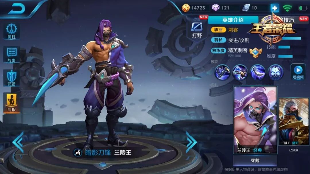 兰陵王是一名来无影去无踪的刺客英雄。他尽心尽力地为每一个落单或者脆皮英雄提供不定向、不定时的“WI-FI服务”。各位召唤师请认准这个兰陵王牌 WI-FI 服务,包你用得舒心,在回泉水的路上多一份安心 (大误) ~