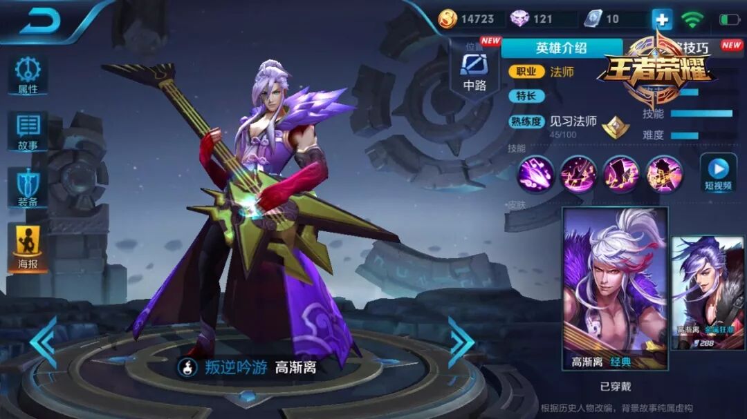 高渐离是一位具有群伤能力的高输出法师。简单来说,就是他弹奏的音乐有毒_(:з)∠)_技能具备提速和留人效果,配合鬼谷子一同食用口味更佳。这招强迫别人留下听音乐的配合,妲己宝宝水土不服就服你呀!