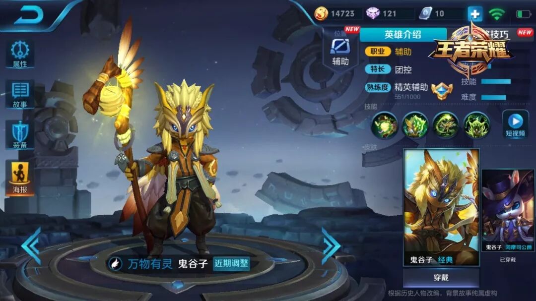 鬼谷子拥有强大的团控能力和团队增益能力。鬼谷子的团队伪装技能让他无论辅助团队进攻还是撤退都有很不错的效果。在没有大招的状态下,鬼谷子的支援能力依然很强,利用1、2技能突进稳定控制,为队伍胜利提供保障。