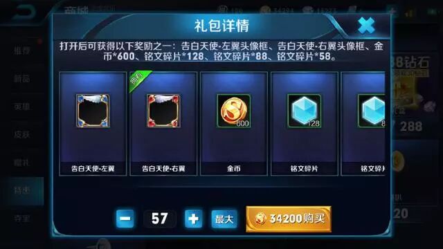 基本就是3样东西,头像款+金币+铭文碎片