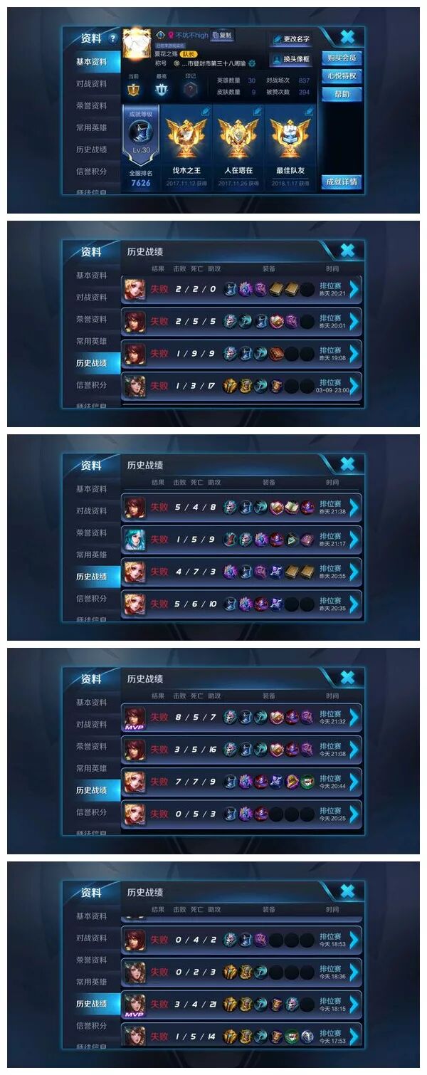 看战绩,确实是惨不忍睹,刚开始还敢玩中单输出,打到后面只敢玩辅助了。自信心都已经输没了!苦主:真的很想跟天美说一句,你给我匹配的队友,我带不动他们,他们也带不动我,对于这种连掉几十星的玩家,大家是怎么看的?