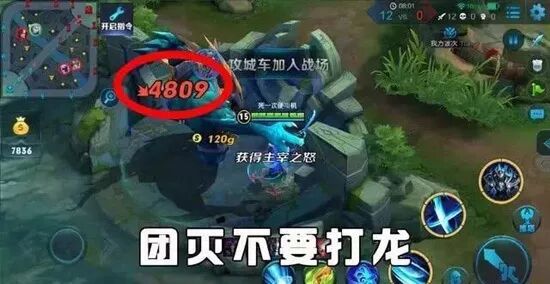 其实这个细节是真的要注意的,尤其是在后期,在二塔那里发生团战,把对面打团灭了之后,一定要一波推进,不要犯傻去打大龙,很难保证你下一次的团战能不能打赢。还有一个问题,就是对面全部复活并且不清楚敌方位置的时候,也不要去打大龙,因为王者荣耀和英雄联盟不同,能不能抢到龙不是靠惩戒,多半都是靠运气,惩戒才1000多的伤害,有些英雄一个平A都有几千的伤害了,万一被抢了大龙,什么优势都没有了。