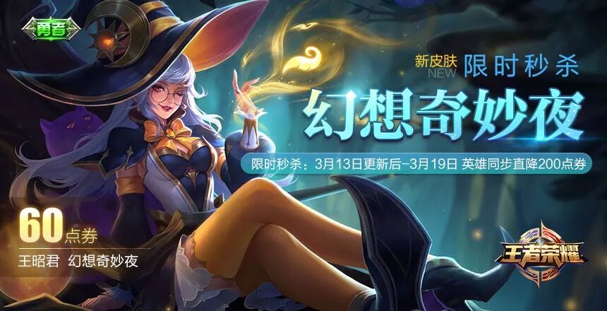 新英雄的爆料就到此结束啦!温馨提示,今天是 王昭君-幻想奇妙夜皮肤 限时秒杀的 最后一天 , 60点券 就能把她抱回家哦!喜欢的召唤师千万别错过~