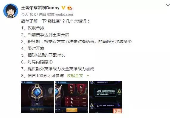 这次策划发文宣传巅峰赛,这个模式主要是针对王者高星分段的人,让他们有一个更高的目标。以免无事可做。算是一个更高的追求,区别于排位, 可以对英雄战力有更高的加成。