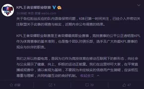 官方说是已经开始介入密切的关注这件事情了,感觉如果核实涉及到的可是KPL官方人员和俱乐部。