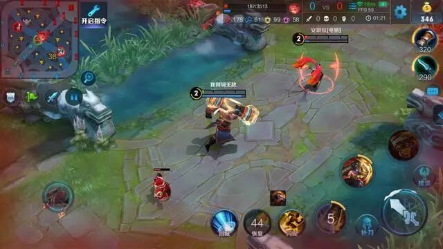 先利用存棍来打出两下强化普攻,然后闪现接普攻,接大招,接2技能!