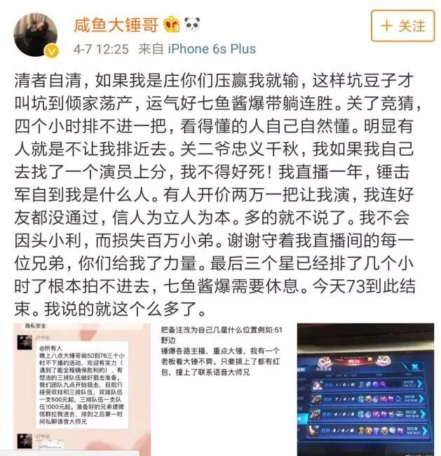 虎牙大锤大家可能不了解,我给大家科普下。赛季初这位主播凭借着40小时连续冲王者失败而成名,当时虎牙宣传重点都给了他。