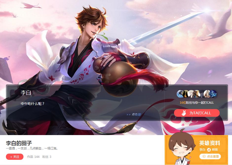 在这里,你可以和 英雄互动 ,可以为喜欢的英雄打CALL,在这里能找到与你志趣相投的小伙伴,能遇见让你心动的作品!