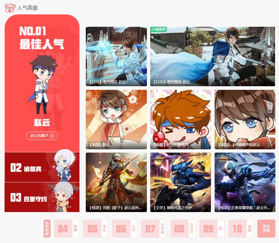 男团女团十大英雄前来为活动助阵打CALL:赵云、诸葛亮、百里守约、李白、铠、花木兰、貂蝉、大乔、孙尚香、虞姬,总有你喜欢的英雄!主站点秀美大气的头图,还有 全新英雄圈子 等你去发现哦~