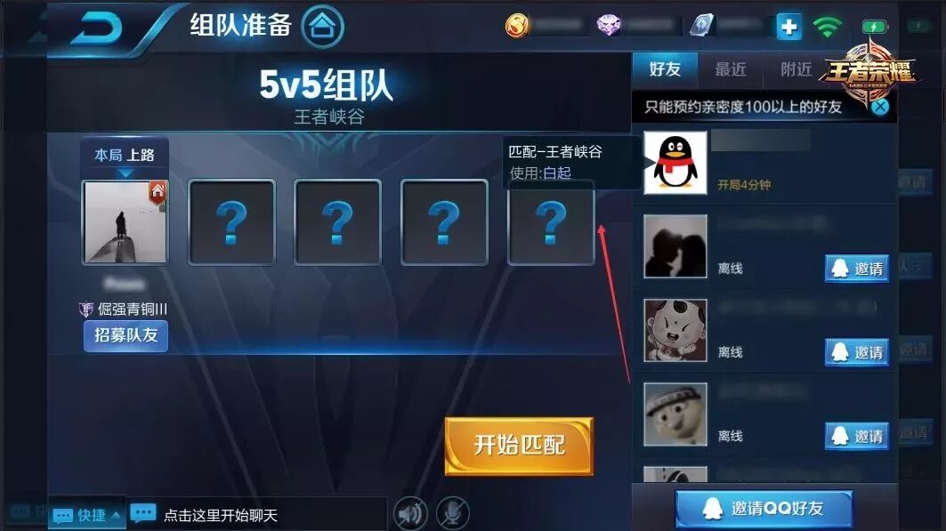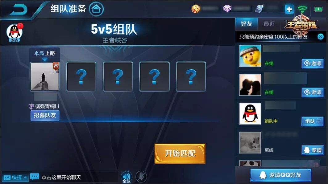 当然,邀请组队中的好友、求组队功能,在组队房间中的战队、最近切页功能都生效。