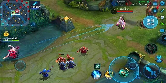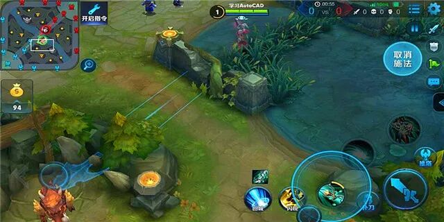 2、在清完兵线去打河道小野怪时可以通过小地图瞄准敌人,用1技能进行消耗;