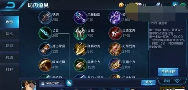 属性总和:攻击速度+16%/物理攻击+20/移速+10%/物理穿透+36/法术穿透+64