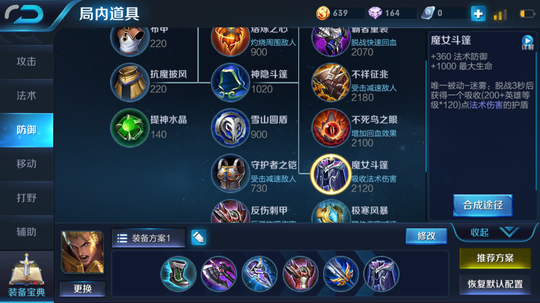魔女斗篷:这是针对对面法师较为常见的一件出装。还有一个就是不死鸟之眼,其效果并不如魔女提供的护盾收益明显。因为是最后一件装备,其实可供选择的还有很多,其思路主要有两个,保命或者打输出。常见的有碎星锤、贤者的庇护等等。大家可以根据局势自行选择。