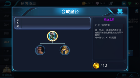 抵抗之靴:游戏中相较于物理防御,提升法术防御的装备并不多,前期在没有魔女斗篷的情况下,抵抗之靴为亚瑟带来的收益就远比隐忍之靴来的高。因为作为一名上单其所面对的往往是射手加辅助的组合,而辅助更多的则是带控制的比如说刘禅、牛头、鱼等。出这件装备可以减少负面效果,不论是逃走还是突进都是十分不错的选择。