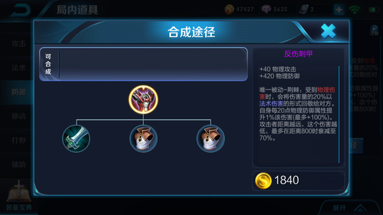 反伤刺甲:游戏中单件物理防御提升最大的装备,虽然没有血量加持,但是由于亚瑟本身被动自带回血效果,契合度也很不错。为其充当前排打下扎实的基础。