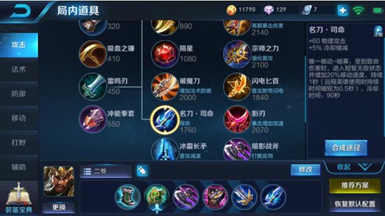 关羽最吃的就是移速,出门必出法抗鞋,之所以出这个是因为有韧性的加成,让关羽多一点免控的能力,然后其次就是风之轻语,出这个装备最大的意义就在于,他增加了好多移速属性,同时这个护盾在关键时刻也可以给关羽保命,之后升级成救赎之翼即可,也可以后期升级。正装开始三四件选择黑切以及暴烈,黑切加攻击和穿透,暴烈则是在关羽挨打之后增加他的输出,打人更疼,后面的两个格子位置留给破军以及反甲,增加大量攻击值的同时还给关羽多了一个反伤能力,其实反甲性价比不高,可以替换成名刀。