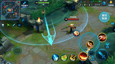 像上图的这种情况,正常视野是完全看不到李信的,更不用说交技能击杀李信了。但如果能熟练运用三指操作的话,视野就不是问题了,可以轻松秒杀李信。