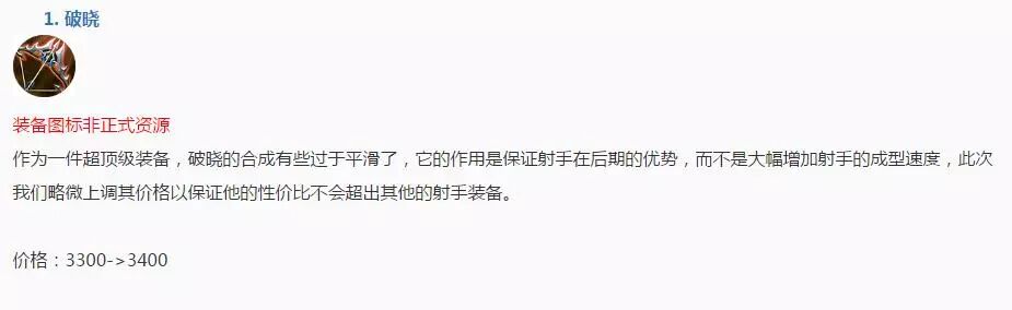 上次给大家说,能第一件出破晓的射手英雄肯定会无解。(孙尚香、百里守约)结果这次调整直接把价格又高了100。