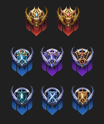 排位赛代表着王者身份的段位象征发生变化,本次美术升级我们重新研究了和提取了龙的形象,寓意着王者的至高无上;并使用了白银黄金等充满金属质感的滤镜使段位图标质感清晰。更新后每个排位赛段位图标造型上都将更加干练、形象感十足。