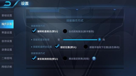 技能轮盘灵敏度:调到最高。技能轮盘呼出位置推荐固定位置,原因很简单,想成为大神,操作要有章法,这种模式下选择技能时都是以技能图标为中心。玩时间久了,统一五指手法也是很重要的
