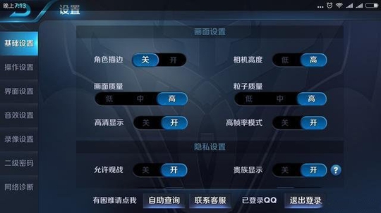 画面质量,粒子质量,建议都选高,高清显示建议开启。这样的好处就是能够清楚的分辨敌方的技能以及技能范围,有些特效不开的话会显示的不明显,从而无法躲,如王昭君的冰圈。