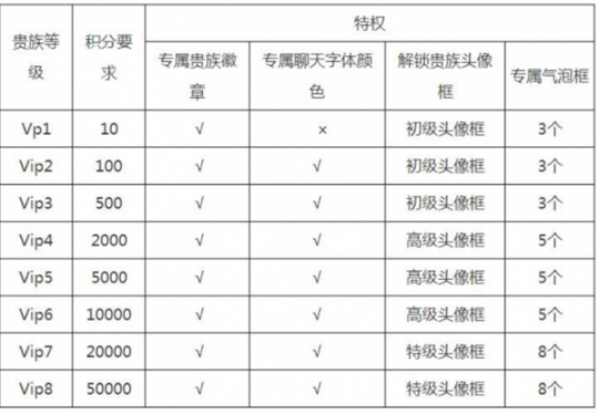 3、贵族积分通过消费点卷获得,消费1点卷=获得1积分。