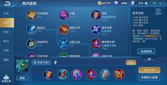 第三件出一件回响之杖,提供移速加成和法术攻击,被动命中敌人的光环还可以帮助墨子探草丛,提高墨子的自保能力,第四件博学者之怒,继续提供高额的法术加成,打出更高的伤害,第五件痛苦面具,提供冷却缩减和法术加成,让墨子可以适当更多的技能,最后一件巫术法杖,配合墨子的一技能后的强化普攻,把伤害最大化。