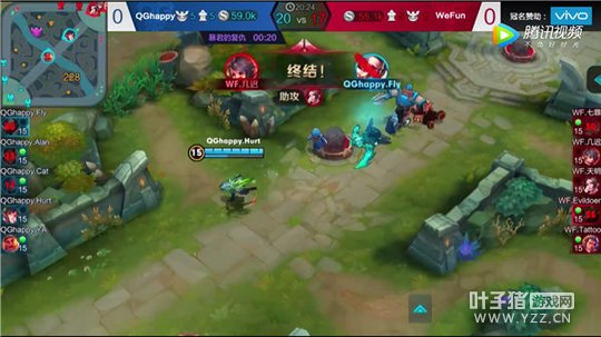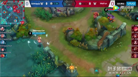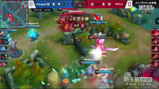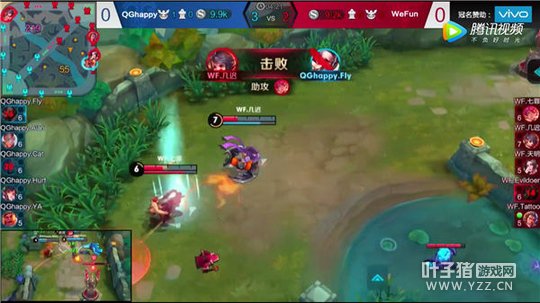 面对春季赛KPL冠军队伍QG,WeFun战队在阵容的选择上更偏向于防守反击型,前期以防御发育为主,待输出位置的李元芳和不知火舞等级到达一定水平,装备成型后即可展开攻势。李元芳在打野位,快速发育,边路关羽、花木兰的清兵能力非常强,只要不贸然跃进前期将会和对方持续焦灼发育,坦克张飞在前期可根据情况游走支援边路及打野位,同时在游走过程中可在河道为队友提供视野,中单不知火舞具备强劲的突进能力,一旦突入后排,将敌方目标击飞,队友就会紧跟开团,顺势而为。即使无奈只能被动防守,这套阵容也可以称为铜墙铁壁一般,只要有人胆敢冒进,一套控制技能交出,突进的敌方英雄将会不知所措。