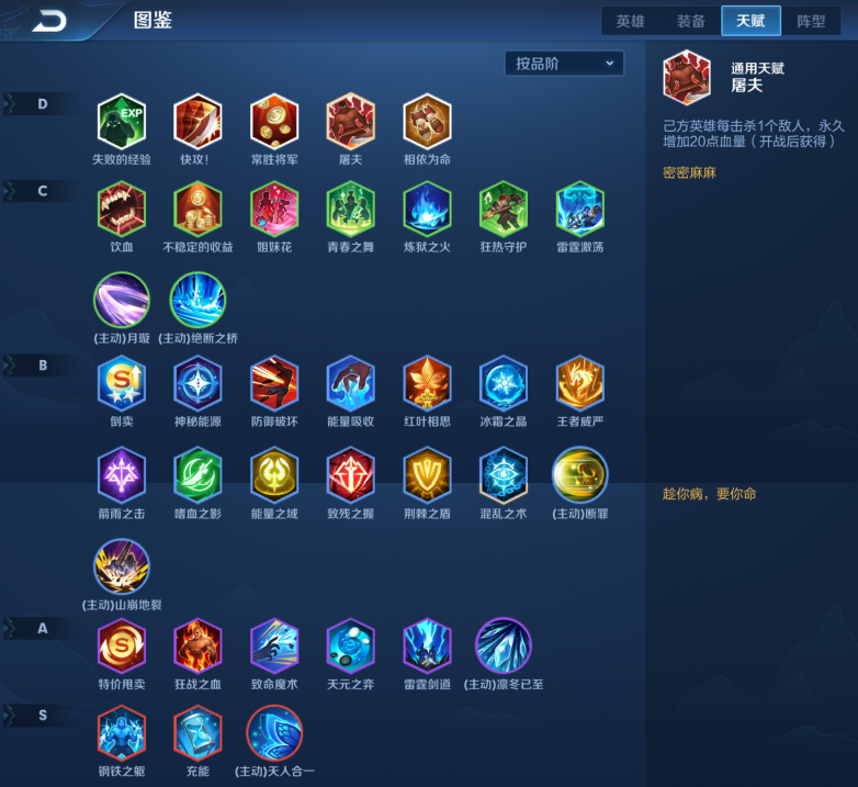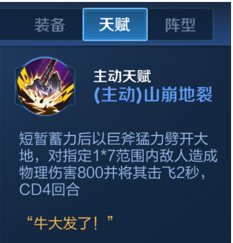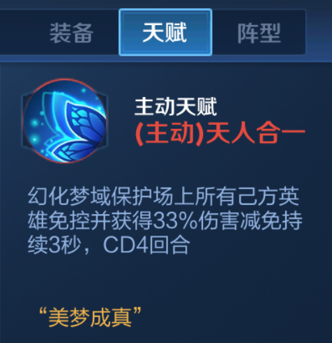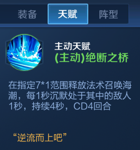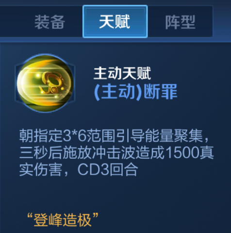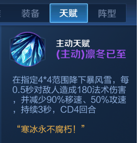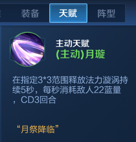 各位召唤师们大家好,随着王者模拟战自走棋模式上线以来就吸引了越来越多的召唤师们加入下棋上分潮流中。而各位玩家们也十分热衷于研究各种上分必知套路。王者模拟战中天赋选择还是很重要的,大部分天赋都是被动天赋,而且效果明显对队伍提升很大,很多玩家选择的也是以被动天赋为第一选择,主动天赋鲜有人选择,今天就给大家介绍怎么活用主动天赋 月璇 描述:在指定3*3范围释放法力漩涡持续5秒,每秒消耗敌人22蓝量,CD3回合。 天赋等级:c级 克制阵容:最克制法师阵容,本身法师阵容是靠技能爆发来秒掉敌方,5秒内减蓝,能让法师的爆发延后,给出别人更多的操作空间。 优势:释放范围比较大,针对法师阵容效果是最明显的,大部分玩家喜欢把法师团团围住保护的死死的,法师全部站在一起,蓄蓝只能靠平A,而且蓄蓝很慢,这就是给了完美的释放机会啊,一个月璇过去,基本法师阵容凉凉。配合吴国减蓝效果更佳。 劣势:法师阵容面对月璇可以适当调整位置,尽可能分开放置法师,月璇效果就是不是太大了。 绝断之桥 描述:在指定7*1范围释放法术召唤海潮,每1秒沉默处于其中的敌人1秒,持续4秒,CD4回合。 天赋等级:c级 克制阵容:克制法核阵容,让法核经历长时间蓄蓝后还不能释放技能,大幅度削弱法核阵容战斗力。 优势:满满的单横排释放范围,持续时间长,可以单独针对法核释放,让法核失去大部分战斗力,在关键时刻是一个奇兵。 劣势:技能本身局限性就很大,只能单横排释放,范围狭小,如果敌方不是单法核,而且灵活性低不建议使用。 断罪 描述:朝指定3*6范围引导能量聚集,三秒后施放冲击波造成1500真实伤害,CD3回合。 天赋等级:b级 克制阵容:以脆皮为核心的输出阵容,一个技能可以打残脆皮。 优势:释放范围大,而且是真实伤害,对1星英雄的威胁性很大,坦克阵容可以拿来补伤害。 劣势:技能释放有延迟,不能当做奇兵,释放时间难以把握,阵容适配比较少。1500的真实伤害到中后期来说伤害有点低,再脆皮的英雄,2星最少都有3600的血,威胁性不大。 山崩地裂 描述:短暂蓄力后以巨斧猛力劈开大地,对指定1*7范围内敌人造成物理伤害800并将其击飞2秒,CD4回合。 天赋等级:b级 克制阵容:克制单核心阵容,2秒的击飞让单核心的输出时间延后,大幅度减少威胁性。 优势:大范围控制,控制时间长,还附带800物理伤害,对于一些缺少控制的阵容来说,可以拿一下。 劣势:有短暂的蓄力,需要把握释放时间,范围也比较狭窄,只能单竖排。 凛冬已至 描述:在指定4*4范围降下暴风雪,每0.5秒对敌人造成180法术伤害,并减少90%移速、50%攻速,持续3秒,CD4回合。 天赋等级:a级 克制阵容:克制尧天和射手阵容,50%的减攻速,靠攻速吃饭的阵容,3秒前的输出想打出来还是有点难的。 优势:4*4的范围在主动天赋技能范围内排第3,范围广,覆盖面积大,实用性强。强大的属性减少非常克制攻速流阵容,是针对攻速流阵容的神器。1080的法术伤害只能算锦上添花。 劣势:技能对核心射手影响不大,核心射手可以依靠装备大幅多减弱主动技能带来的削减,像是装备影刃、电刀的核心射手,配合国家和职业效果,攻速还是能突破150%。 天人合一 描述:幻化梦域保护场上所有己方英雄免控并获得33%伤害减免持续3秒,CD4回合。 天赋等级:s级 克制阵容:控制体系和爆发体系,群体解控再加上33%的免伤,阵容威胁性低到可怜。 优势:适用任何阵容体系的神技,单凭群体免控就稳坐一哥位置成为天赋必拿之一,还不用说3秒的33%群体免伤,让这个主动技能成为神上之神。 劣势:完美的技能,没有弱点。 总结: 总之,,主动天赋的适用场景不同,没有废的这一说法,在合适的阵容就算拿低等级天赋可能有时发挥出来的威力比s级还大。大家优先要考虑的是如何根据已经来了的牌及场上局势分析自己要打的阵容,十回合左右确定阵容,实时观察同行动向及拿牌天赋情况,做到灵活处理,没有最强的阵容,只有最灵活的玩家,希望大家多多去实战中演练噢。 如果您想了解更多王者荣耀自走棋王者模拟战的内容,请关注 叶子猪王者模拟战专区
