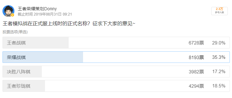 王者荣耀新模式王者模拟战在体验服上线,自8月2日公布以来,这个“王者荣耀版本的云顶之弈”自走棋玩法就备受关注,而至于王者模拟战什么时候上线正式服?至今仍是一个未解之谜。当然,我们也可以从一些蛛丝马迹以及官方过往的一些节奏,去预算一下王者模拟战正式上线时间。 根据王者荣耀版本更新的进度,在体验服测试上线的新模式,一般都是20天测试完毕之后,才会上线正式服。目前已经8月底,马超上线更新大版本,王者模拟战并没有一并推出,因此王者模拟战也只可能等到下一个大版本,即是新赛季S17,完成测试登陆正式服。 王者荣耀新赛季S17赛季更新延迟,原本推算是S16赛季9月22日结束,9月23日——9月30日更换S17,目前在排位赛系统中已经确定延迟到10月份。以往都是三个月一个赛季的节奏设定,大版本拖后可想而知,很大程度上是因为新模式需要更多时间优化。经过笔者柯南神探般的推理,真相只有一个,那就是:王者荣耀云顶之弈玩法,将会在10月底上线! 近日王者荣耀策划Donny在微博中向玩家发起问题:王者模拟战在正式服上线时的正式名称你希望是什么?35.3%的玩家投了荣耀战棋,29%投了王者战棋。 王者模拟战玩法基本上就是云顶之弈自走棋的玩法模式,故事背景上则是以稷下学院的课余活动,学生们8人为一组的沙盘竞赛。对应的就是战法射刺坦辅6大职业,魏蜀吴、长城守卫军等8个人气阵营。因此在评论中,有玩家就建议以“归墟梦演”命名名字,感觉更有文化感,策划Donny也进行了回应,表示命名会更贴近玩家想法。 另一部分玩家,则是滑稽地表示:不如叫云顶之弈吧,实力暗讽王者荣耀一直与英雄联盟LOL的高度相似。 当然也有玩家认真讲道理,认为王者荣耀多种鸡肋的娱乐模式,比如五军对决、边境突围、火焰山大乱斗、无限乱斗、梦境大乱斗等等,已经让游戏一下子占到5G内存,玩法虽多但却没什么人玩,这种娱乐新模式并不值得开发,还不如直接做好游戏优化,特别是最近玩家疯狂吐槽的信誉系统乱扣分问题。 在评论中可以看到,网友们对王者模拟战新玩法的看法两极分化,很大原因是基于王者荣耀本身5V5团战排位赛才是游戏核心玩法,冗多的游戏模式占用了太多游戏时间,并不受玩家青睐。 但反观英雄联盟LOL云顶之弈玩法刚推出的时候,也并不受LOL玩家期待看好,而正式加入排位赛模式影响胜点段位,也很快以黑马之势成为关注点,主播直播间带节奏,玩家自发建群讨论,各种什么“火炮拉面熊”、“鸟盾法”、“虚空斗”、“海克斯科技”等骚套路,也是升华了云顶之弈本身自走棋玩法,带来了更多快乐。 因此在讲到这一点的时候,在有着如此成功的LOL云顶之弈先例,王者荣耀想在竞技团战之外,大版本加入王者模拟战自走棋玩法,在上线测试完善后,转而将其加入排位赛模式中,又未尝不可呢? 毕竟也并不是每个玩家都希望快节奏、秀操作、拼手速的MOBA竞技玩法,如果能悠闲地下下棋,利用自己的聪明才智上王者,岂不是更加轻松快乐,至少都不用熬夜排位肝到爆。而且还能看到自己喜欢的棋子摇身一变成为棋盘中的小小棋子,各种我们追过的英雄CP,比如貂蝉吕布,周瑜小乔,大乔孙策等也会有宿命羁绊,其实也挺美的。 目前官方也已经爆出将会推出王者荣耀模拟战排位赛,排位机制与王者峡谷5V5段位相似,根据段位积分从青铜晋升白银、黄金、铂金、钻石、星耀、最强王者,甚至也有可能会有多排、单排、三排的匹配加入,其实空间还是王者模拟战很大的。那么,对于王者荣耀云顶之弈玩法,如果真的10月底上线,你会玩吗? 如果您想了解更多王者荣耀自走棋王者模拟战的内容,请关注 叶子猪王者模拟战专区