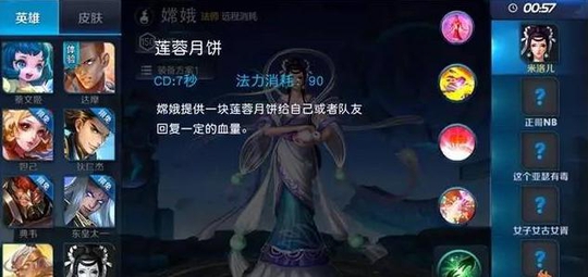 2技能:嫦娥提供一块莲蓉月饼给自己或者队友,回复一定的血量。