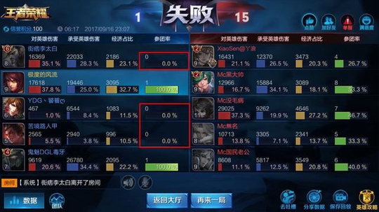 宫本,李白,吕布的参团率都为零,当然天美的这个参团率计算是不准确的(只是按助攻和人头来计算)